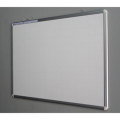 + Mặt bảng từ trắng được làm bằng thép phủ sơn chống lóa, có dòng kẻ ô ly mờ 5x5cm, bảng có từ tính nên hít được nam châm giúp người sử dụng có thể ghim giấy tờ, tranh ảnh lên trực tiếp mặt bảng.