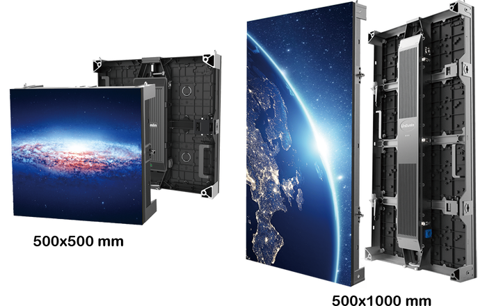 Tấm màn hình LED ghép với kích thước và tỷ lệ đa dạng đáp ứng mọi nhu cầu về thiết kế và hiển thị của khách hàng. Thiết bị DNC cung cấp hai loại tấm màn hình LED với kích thước tiêu chuẩn là 500 x 500 mm (tỷ lệ 1:1) và 500 x 1000 mm (tỷ lệ 1:2)