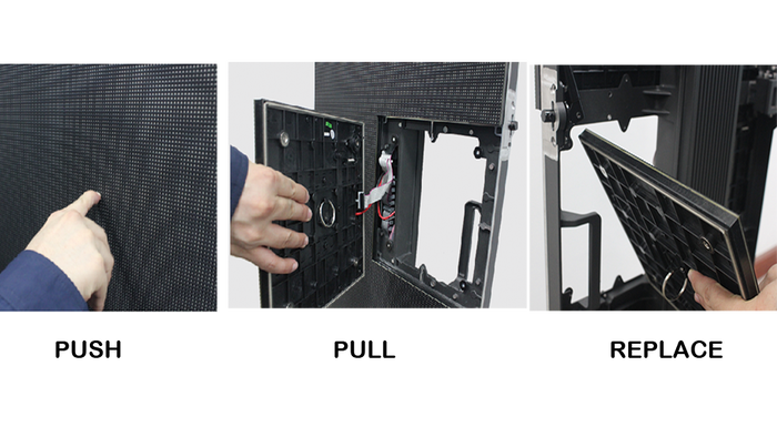 Các tấm màn hình LED ghép của Thiết bị DNC có thể tháo rời dễ dàng từ cả phía trước và phía sau giống như những miếng ghép xếp hình. Thiết kế này giúp nhân viên kỹ thuật lắp ghép những màn hình lớp một cách nhanh chóng và đơn giản, loại bỏ những thao tác phức tạp khi bảo trì và thay thế thiết bị, giúp giảm đáng kể chi phí cho khách hàng.